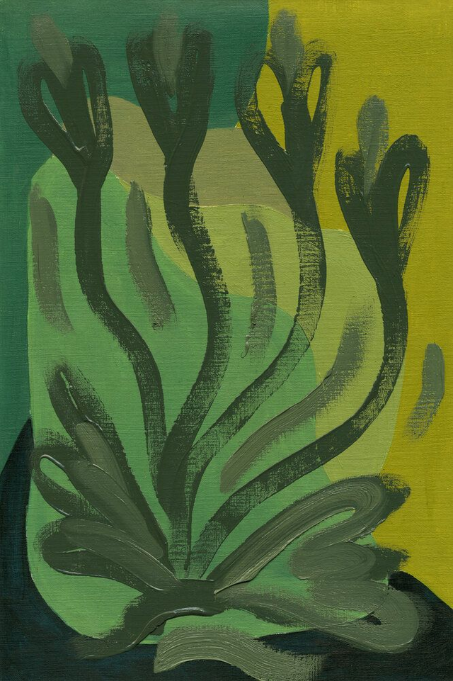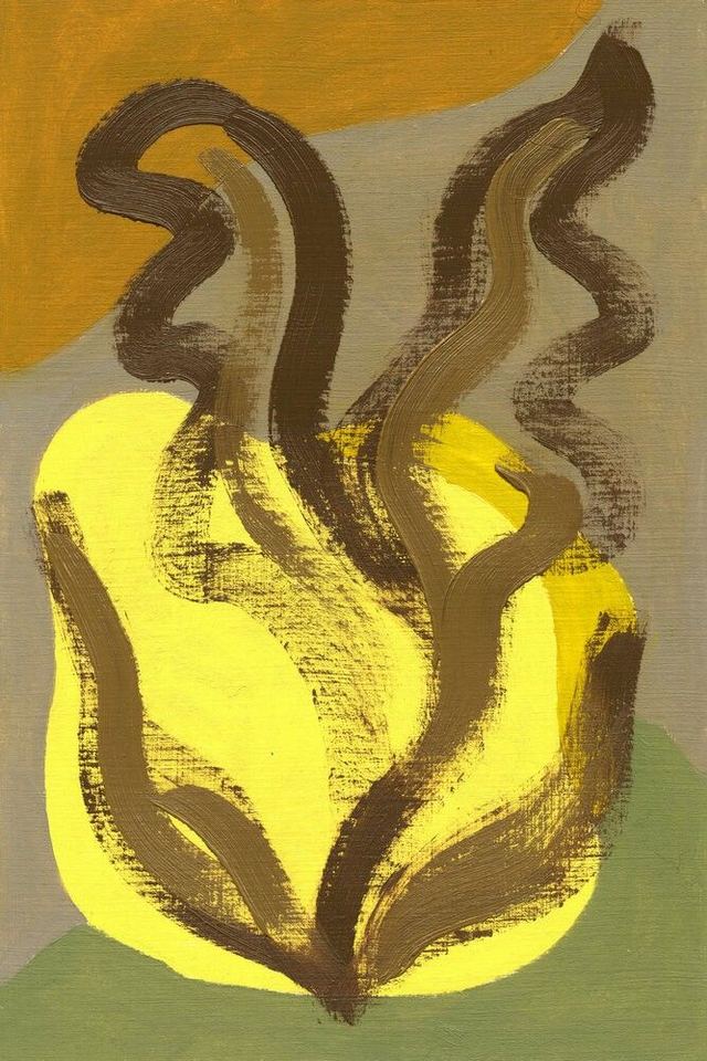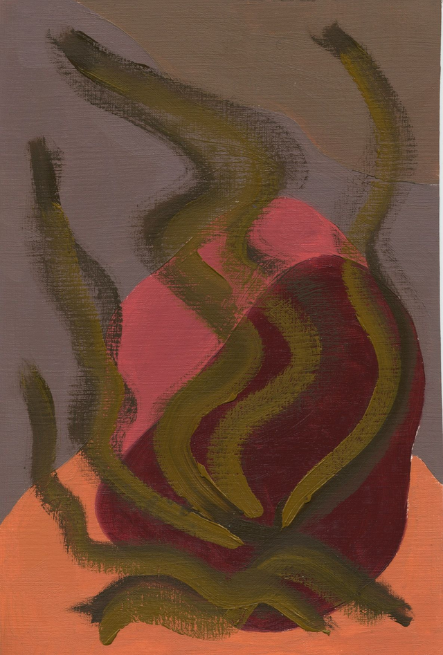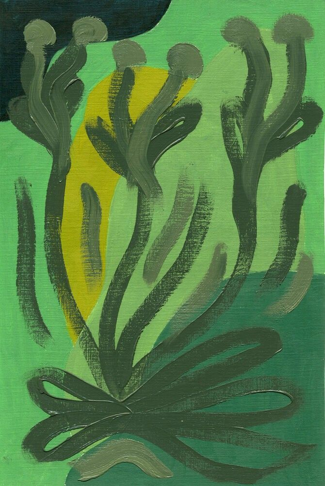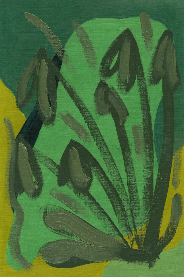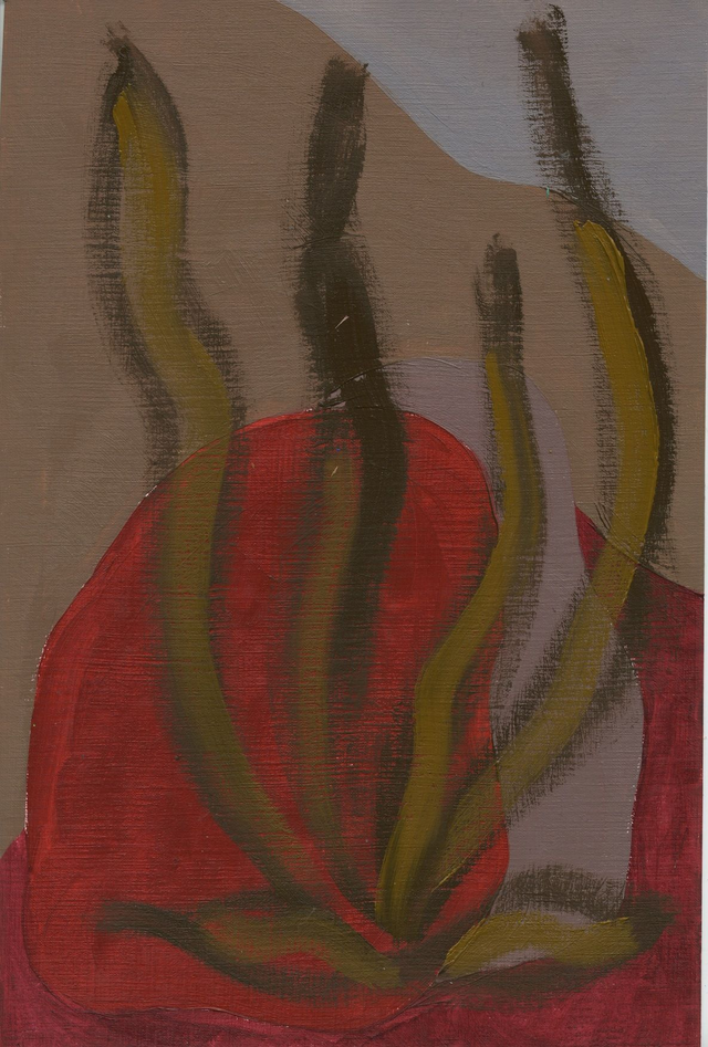 Abstracte botanische vormen in een geel, rood, blauw of groen kleurenpalet. Deel van mijn Botanische Familie. Olieverf op papier, 20 x 30 cm. Prijs per stuk, zonder lijst.