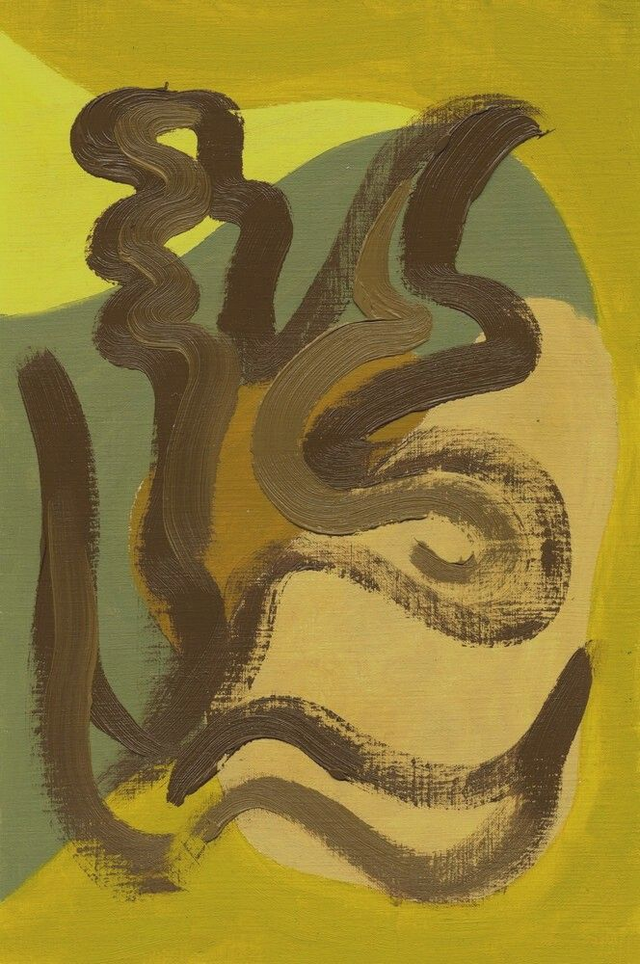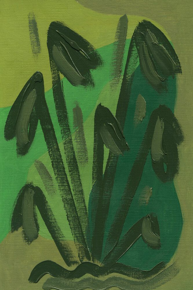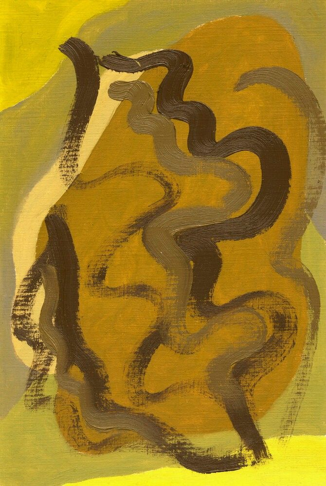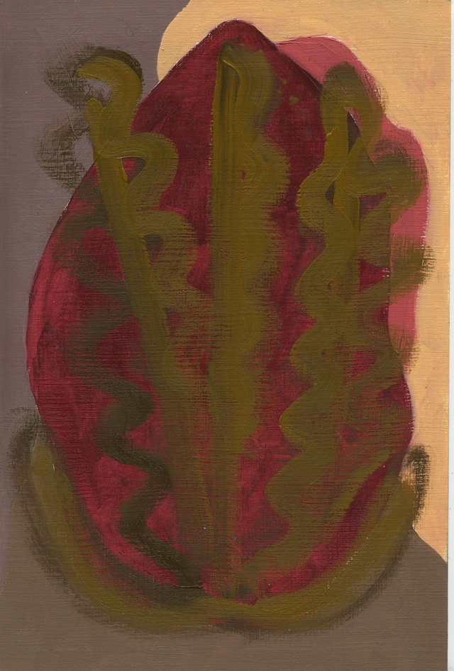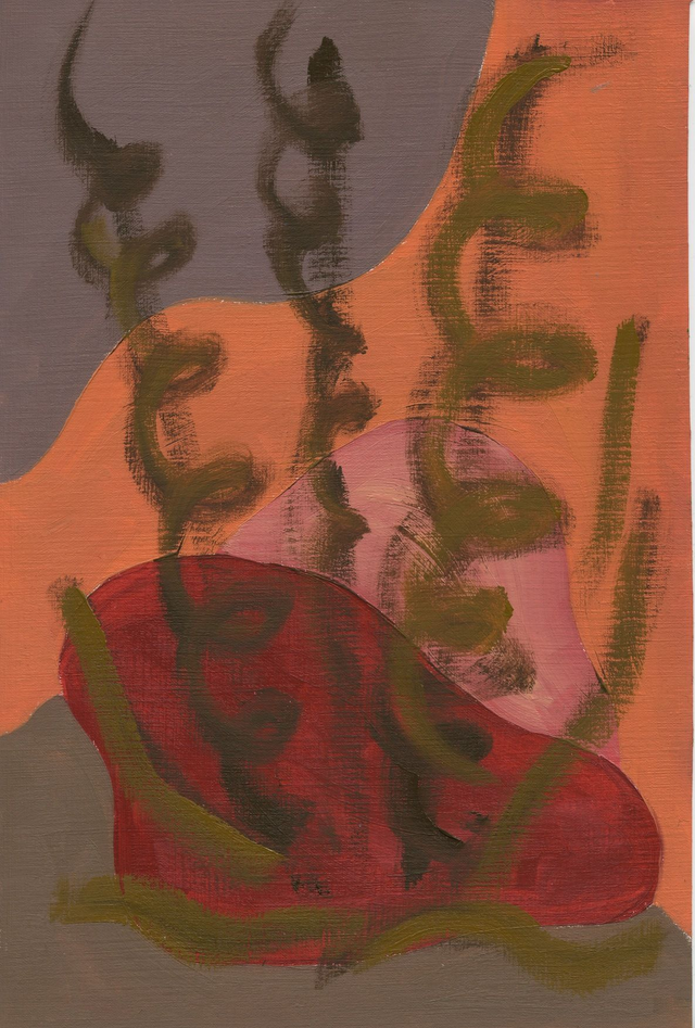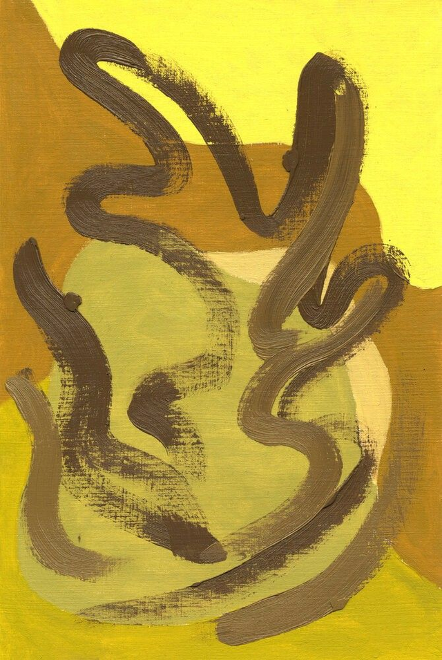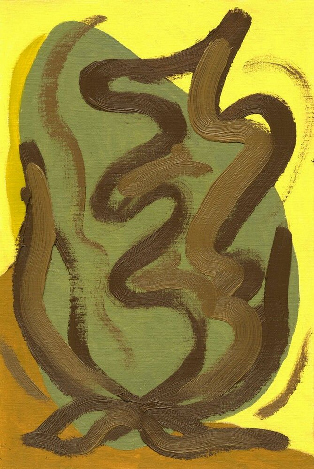 Abstracte botanische vormen in een geel, rood, blauw of groen kleurenpalet. Deel van mijn Botanische Familie. Olieverf op papier, 20 x 30 cm. Prijs per stuk, zonder lijst.