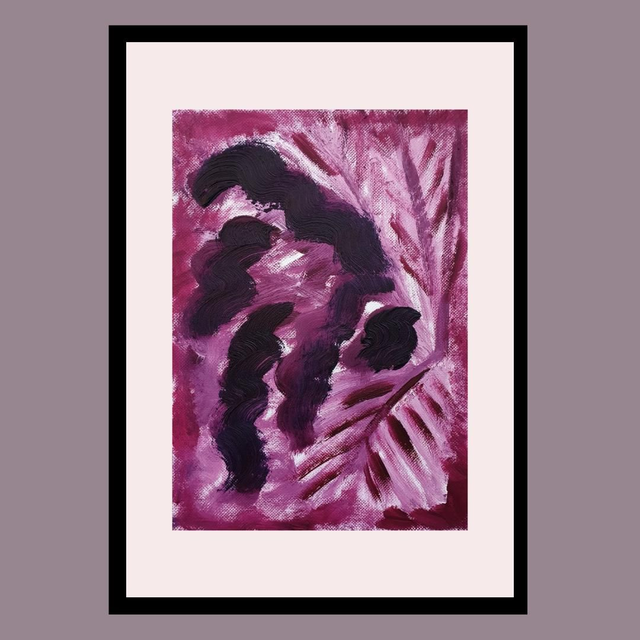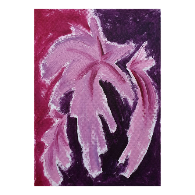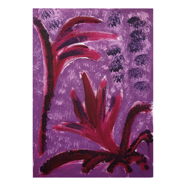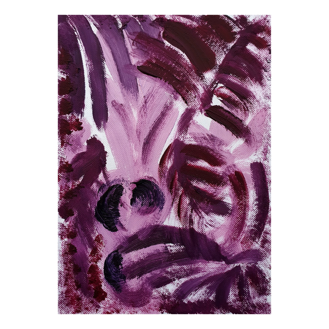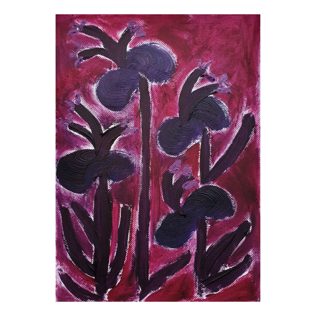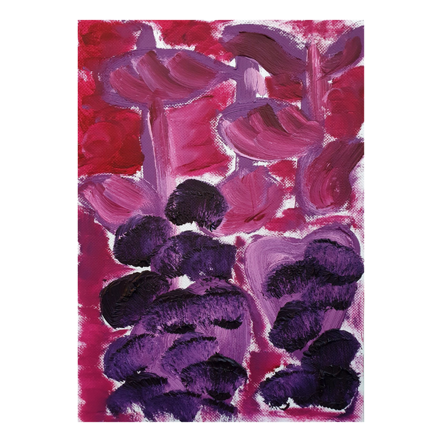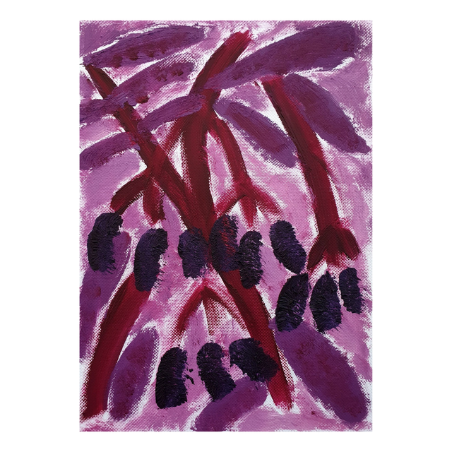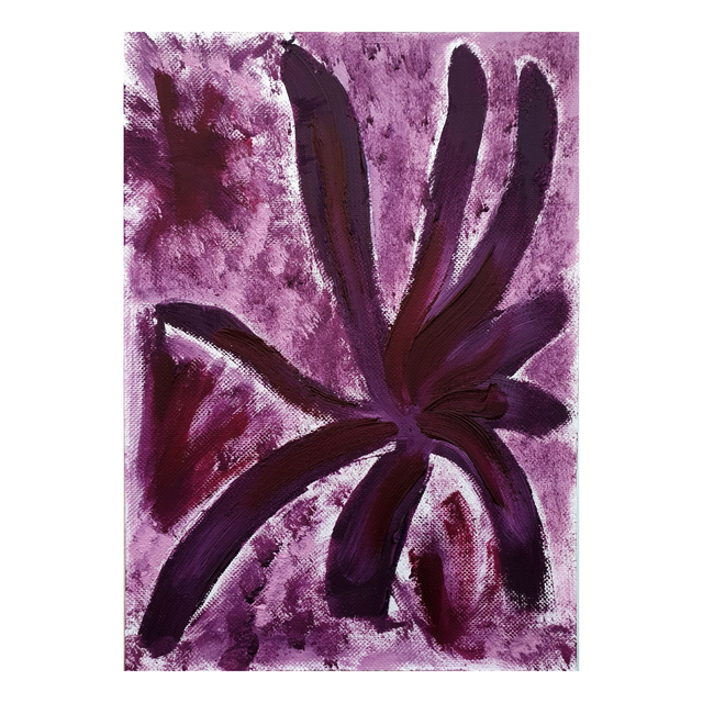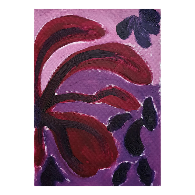 Botaniska oil paint sketches in red/purple tones. Oil on structured paper, 15x20cm, 2025. Comes in basic black frame, ready to hang.