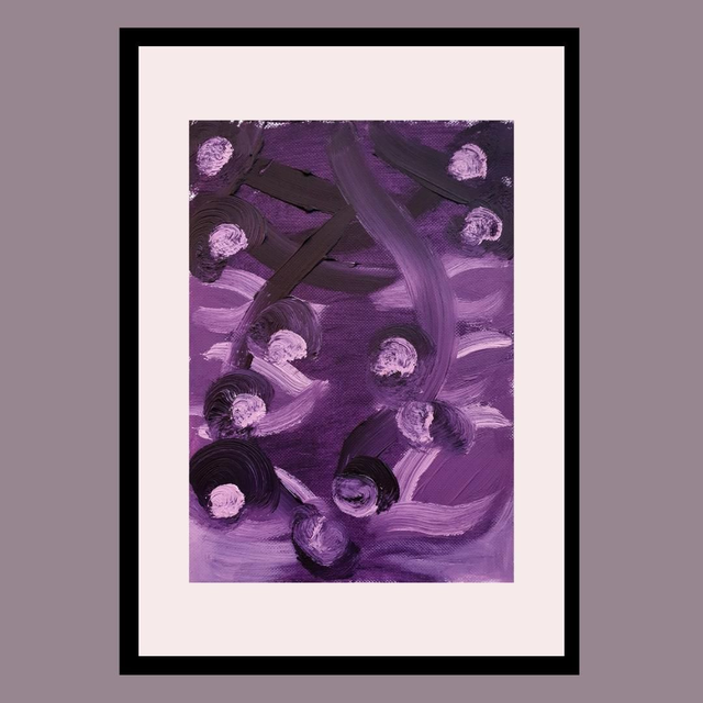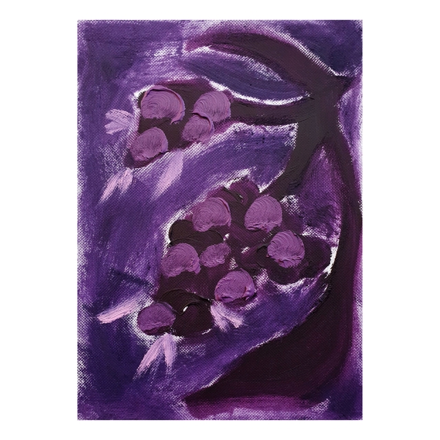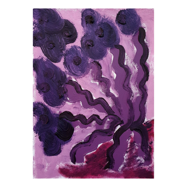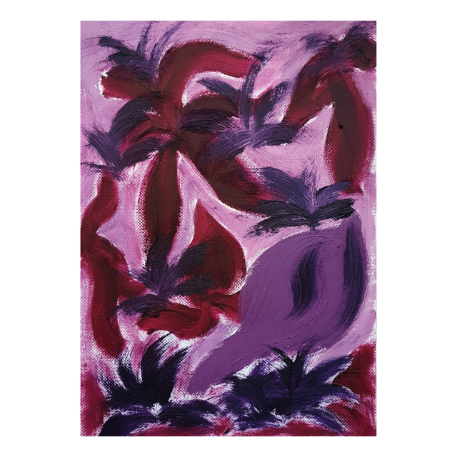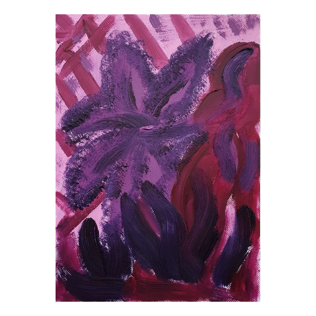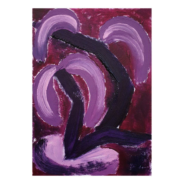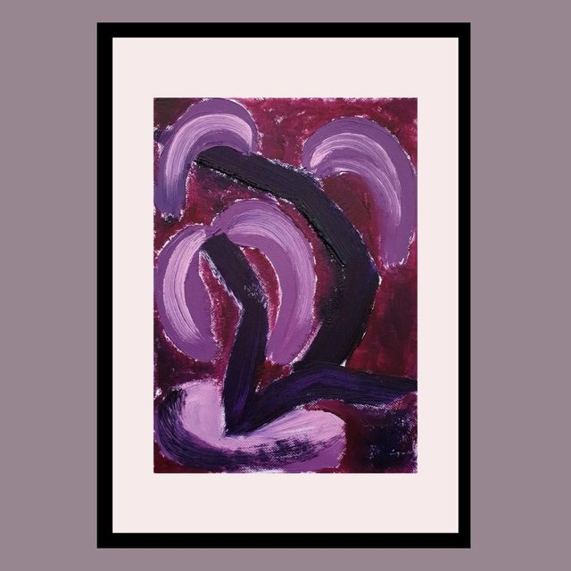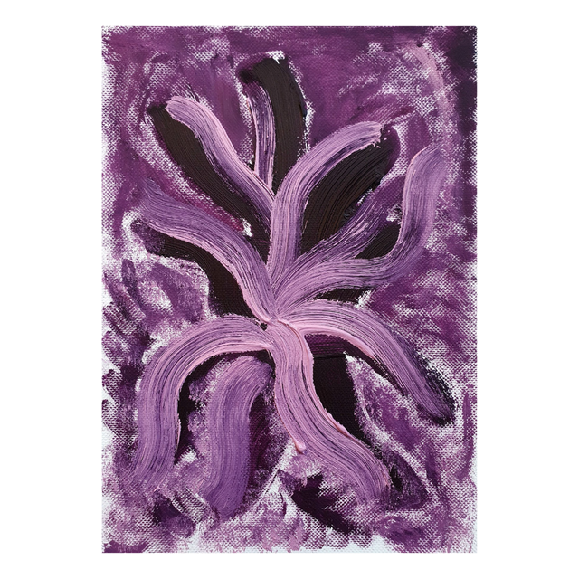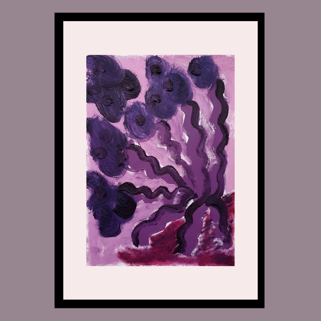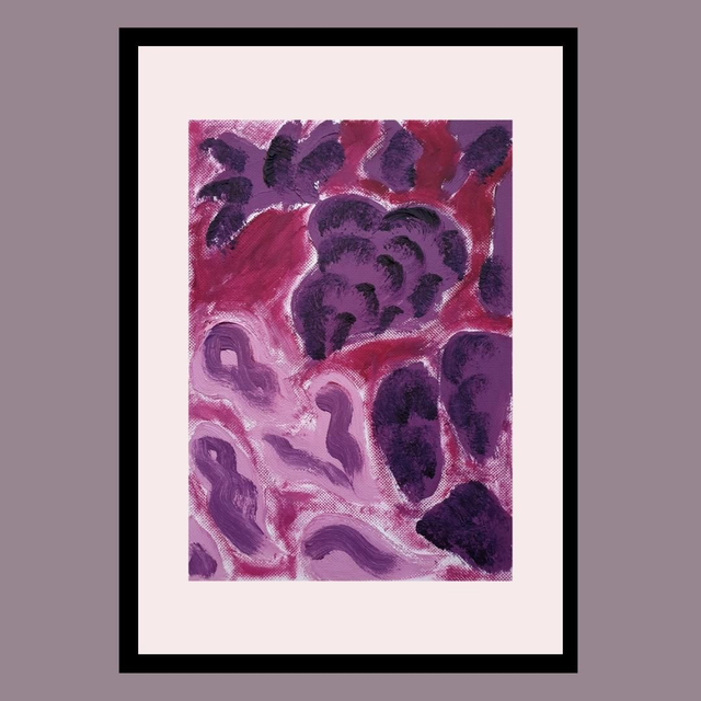 Botaniska oil paint sketches in red/purple tones. Oil on structured paper, 15x20cm, 2025. Comes in basic black frame, ready to hang.