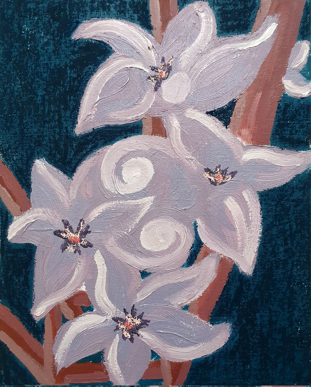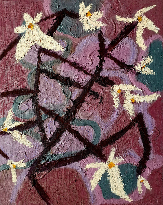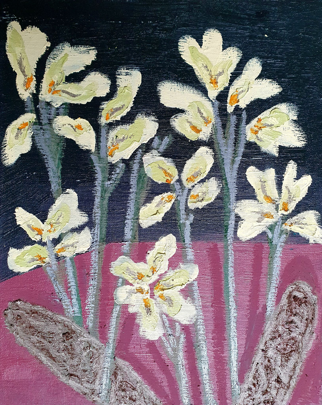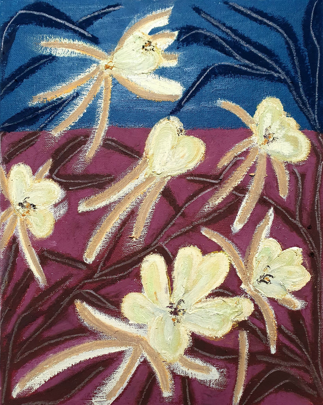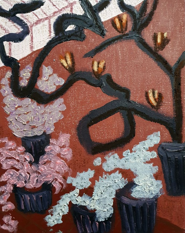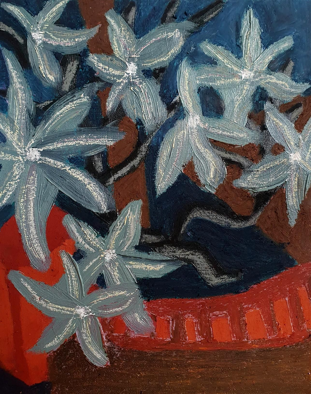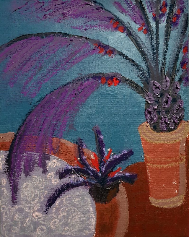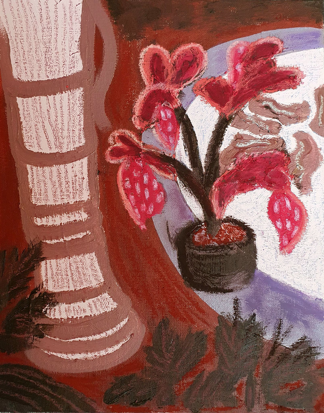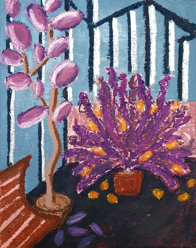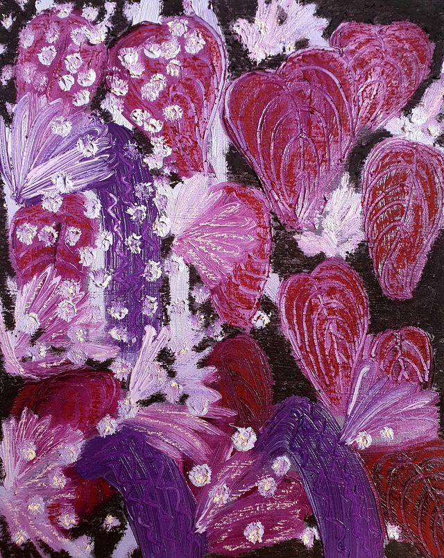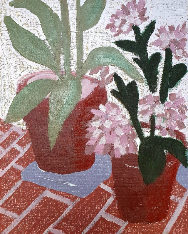 Olieverf op canvasboard, 24 x 30 cm (2025). Geïnspireerd op de borders en kassen van de botanische tuinen in Göteburg en Stockholm, Zweden. 32 verschillende schilderijen beschikbaar. Prijs per stuk. Selecteer ook de variant 'Baklijst | Box Frame' als je jouw exemplaar graag ingelijst ontvangt in blanke houten baklijst.