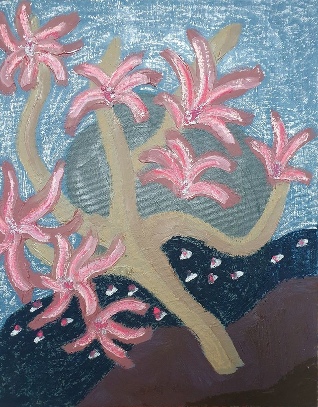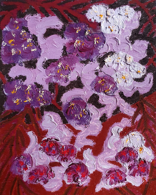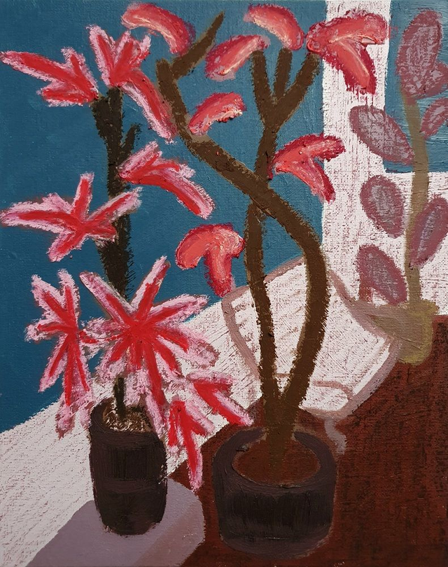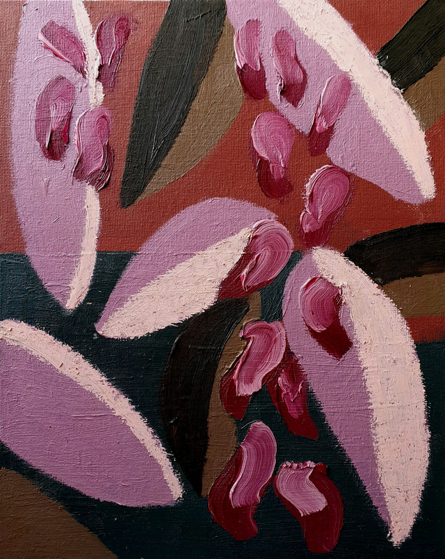 Original oil paintings on canvas boards, 24x30 cm (2025). Inspired by the flower beds and glasshouses of Götenburg's and Stockholm's Botanic Garden in Sweden. 32 different paintings available. Price per piece. Please also select the option 'Baklijst | Box Frame' if you would like yours framed in wooden box frame.