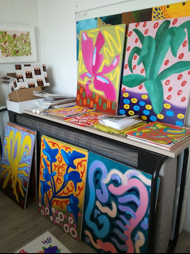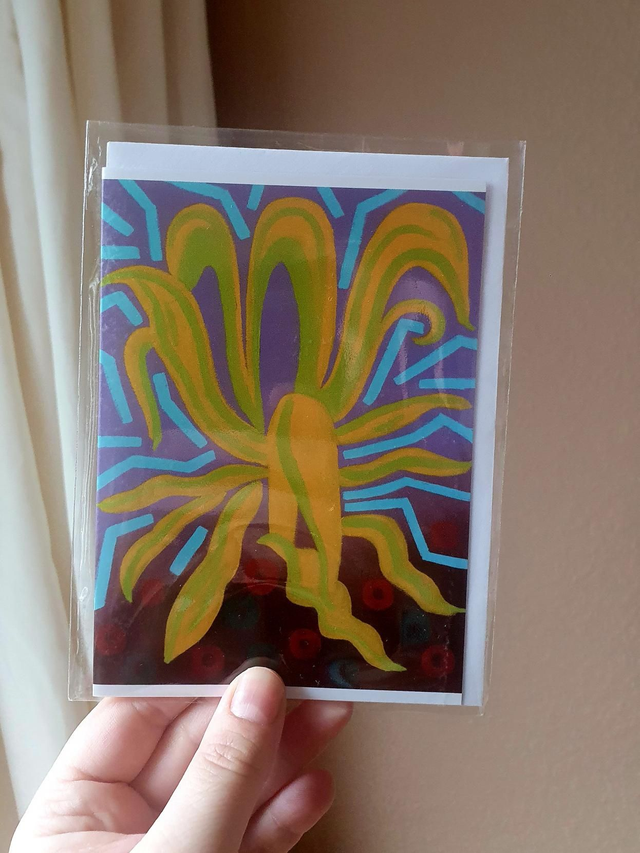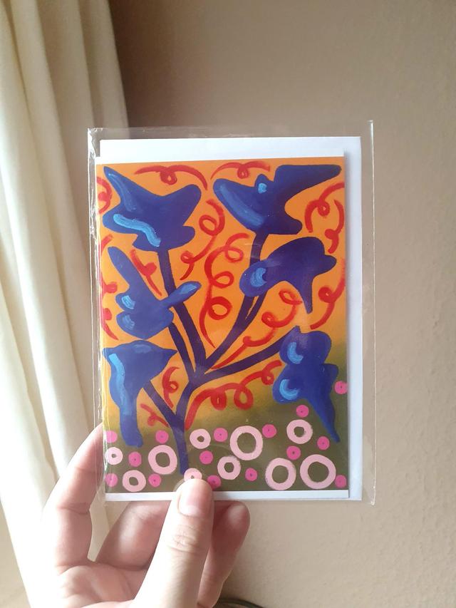 Size A6 art greeting cards with a digital reproduction of my five Majorelle oil paintings: Blue Fern, Yellow Agave, Green Cactus, Blue Alocasia and Pink Banana. €3,50 each, or buy a set: all 5 cards for €10,- or 2 x 5 cards for €20,- (sets come in a craft string and washer envelope).