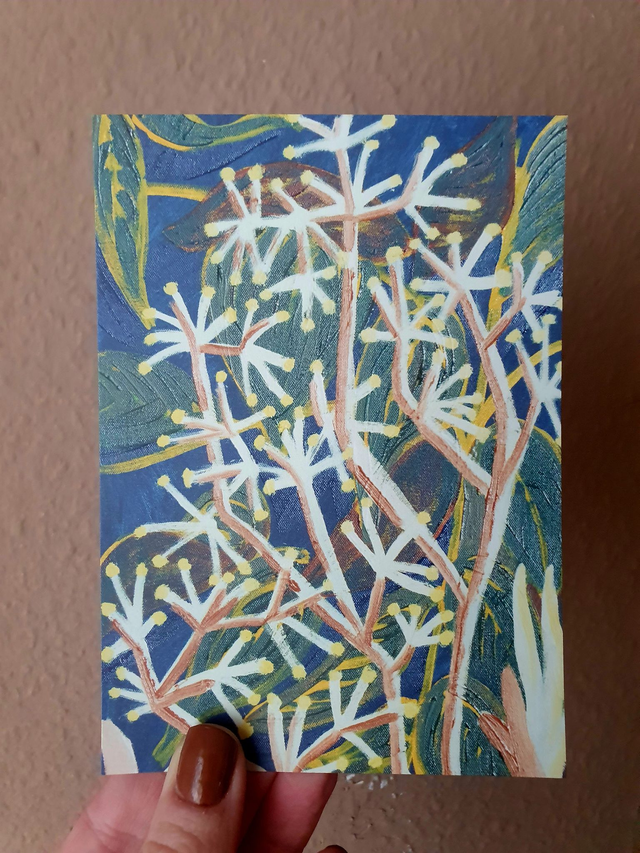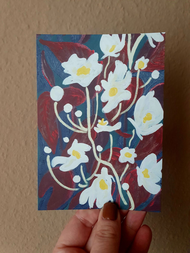 Size A6 art postcards with a digital reproduction of my five Night Garden oil paintings. €2,- each, or buy a set: all 5 cards for €7,50 or 2 x 5 cards for €10,- (sets come in a craft string and washer envelope). Blank on the back for your own message.