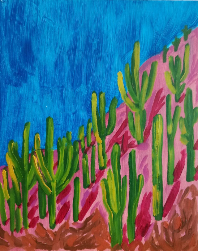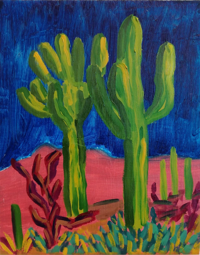 Urban Desert ansichtkaarten (A6). 20 verschillende ansichtkaarten met daarop digitale reproducties van originele olieverfschilderijen. Blanco achterkant voor je eigen bericht. Verkrijgbaar per stuk (€ 1,-) of per set van 20 (€ 15,-).