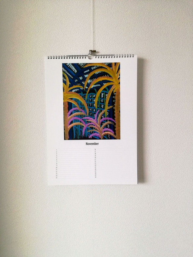 Hortus by Night verjaardagskalender. Spiraalgebonden verjaardagskalender met 12 digitale reproducties van olieverfschilderijen uit de Hortus by Night collectie.